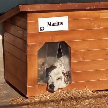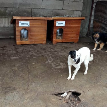 De décembre 2022 à avril 2023, les donateurs se mobilisent avec une belle efficacité...les uns offrent une niche, d'autres se groupent ensemble pour en acheter une, d'autres enfin en achètent plusieurs. Tous ont la possibilité de choisir un nom pour leur niche, en général, le nom d'un chien qu'ils aiment ou ont aimé...Et les menuisiers roumains s'activent. La tâche est importante, le climat roumain de l'hiver ne facilite pas les choses, les niches sont lourdes à transporter dans la neige et la boue...Mais avec de la volonté et de l'obstination, on y arrive !