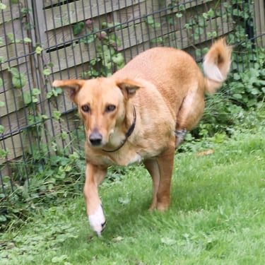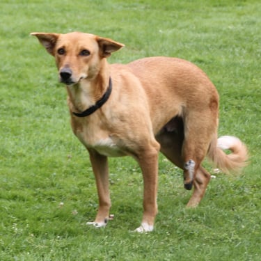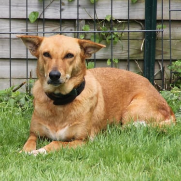 Happy a environ 5-6 ans, elle pèse 16 kg (taille moyenne), elle est, bien entendu, identifiée, vaccinée et stérilisée et elle cherche sa famille pour la vie.