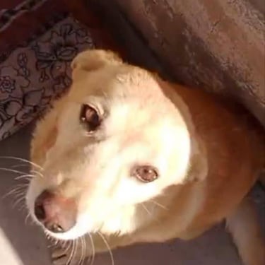 J'étais une petite chienne errante dans un quartier où j'arrivais tant bien que mal à me nourrir, mais un jour une camionnette est arrivée à toute vitesse, des individus armés sont sortis et m'ont tiré dessus, la balle explosive a pulvérisé ma patte, j'ai réussi à me cacher sous une voiture, la douleur était atroce, ils ont massacré tous mes copains, les ont jetés dans les camionnettes, certains encore vivants, un silence de mort à suivi, j'étais terrifiée...