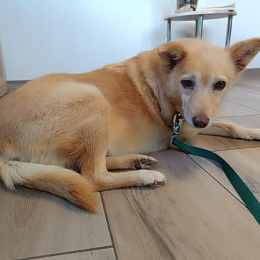 J'ai tout juste 7 ans estimé le 01/01/26, je pèse 16 kg, je suis croisée Welsh Corgi. Je suis identifiée, vaccinée et stérilisée. Je suis un AMOUR de petite chienne tripattes : je suis posée, calme, sociable, ok chiens et ok chats. L'idéal pour moi serait un foyer tranquille et calme, des retraités par exemple. Un rez de jardin est indispensable pour moi, pas d'appartement et pas d'escaliers.